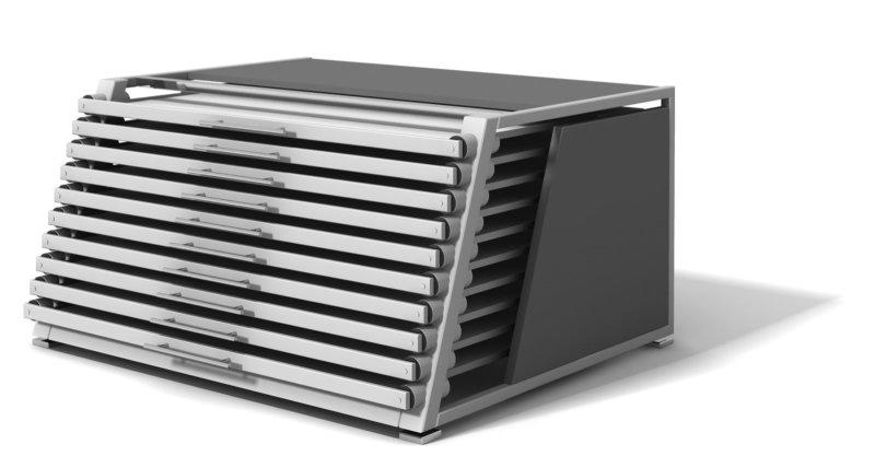 TECHNISCHE DATEN Breite / Tiefe / Höhe - 1390 x 1200 x 750 mm ausgezogen - 1900 mm Auszüge - 10 Metallrahmen 1215 x 925 mm Tafelformat - 10 Mustertafeln 1210 x 920 mm Führungsrohr - Edelstahl, 16-fach kugelgelagert Belastung - PREMIUM - max. 60 kg Belastung - SOLID - max. 100 kg (*) Ablageplatte - Spanplatte, Dekor, beschichtet Seitenplatte - Spanplatte, Dekor, beschichtet Rückwand - Spanplatte, Dekor, beschichtet (*) Farbgestaltung - siehe Kundendienst / Dekore (*) - Sonderausstattung gegen Aufpreis