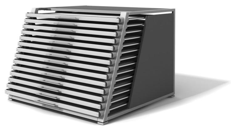 TECHNISCHE DATEN Breite / Tiefe / Höhe - 1390 x 1300 x 1000 mm ausgezogen - 2000 mm Auszüge - 14 Metallrahmen 1215 x 925 mm Tafelformat - 14 Mustertafeln 1210 x 920 mm Führungsrohr - Edelstahl, 16-fach kugelgelagert Belastung - PREMIUM - max. 60 kg Belastung - SOLID - max. 100 kg (*) Ablageplatte - Spanplatte, Dekor, beschichtet Seitenplatte - Spanplatte, Dekor, beschichtet Rückwand - Spanplatte, Dekor, beschichtet (*) Farbgestaltung - siehe Kundendienst / Dekore (*) - Sonderausstattung gegen Aufpreis