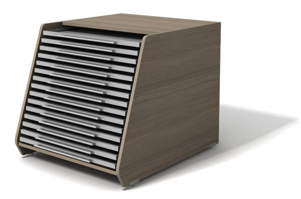TECHNISCHE DATEN Breite / Tiefe / Höhe - 1015 x 1350 x 1000 mm ausgezogen - 2100 mm Auszüge - 15 Metallrahmen 925 x 925 mm Tafelformat - 15 Mustertafeln 920 x 920 mm Belastung - COMPACT - max. 40 kg Ablageplatte - Spanplatte, Dekor, beschichtet Seitenplatte - Spanplatte, Dekor, beschichtet Rückwand - Spanplatte, Dekor, beschichtet (*) Farbgestaltung - siehe Kundendienst / Dekore (*) - Sonderausstattung gegen Aufpreis